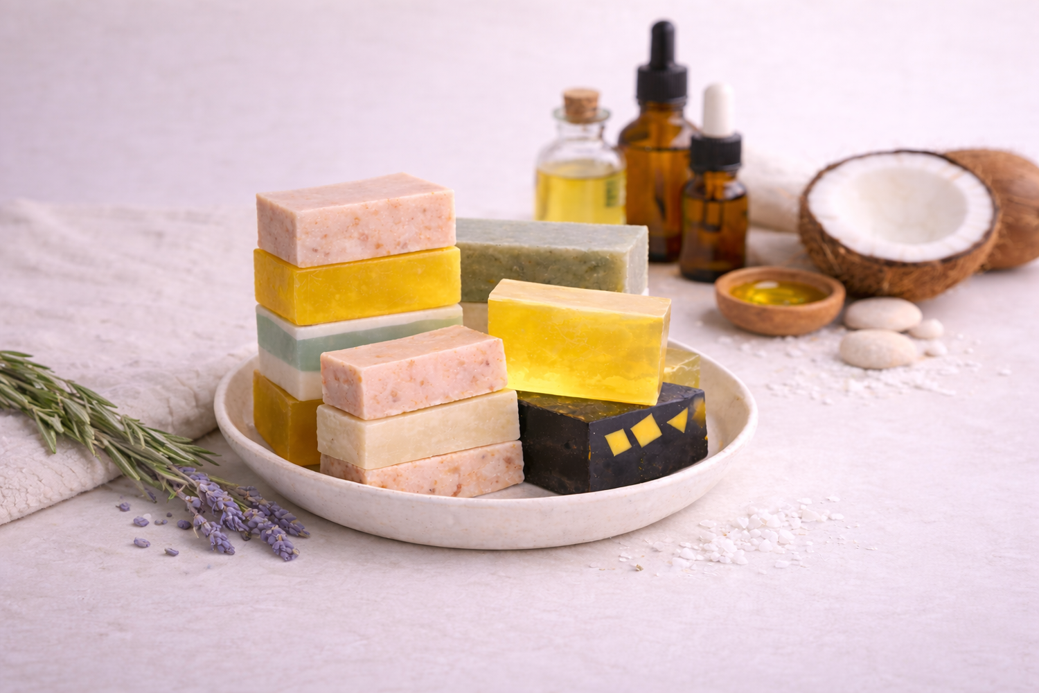 Creamos jabones artesanales hechos a mano y aceites naturales diseñados para aliviar condiciones como psoriasis, rosácea, eczema, piel sensible y desequilibrios cutáneos.